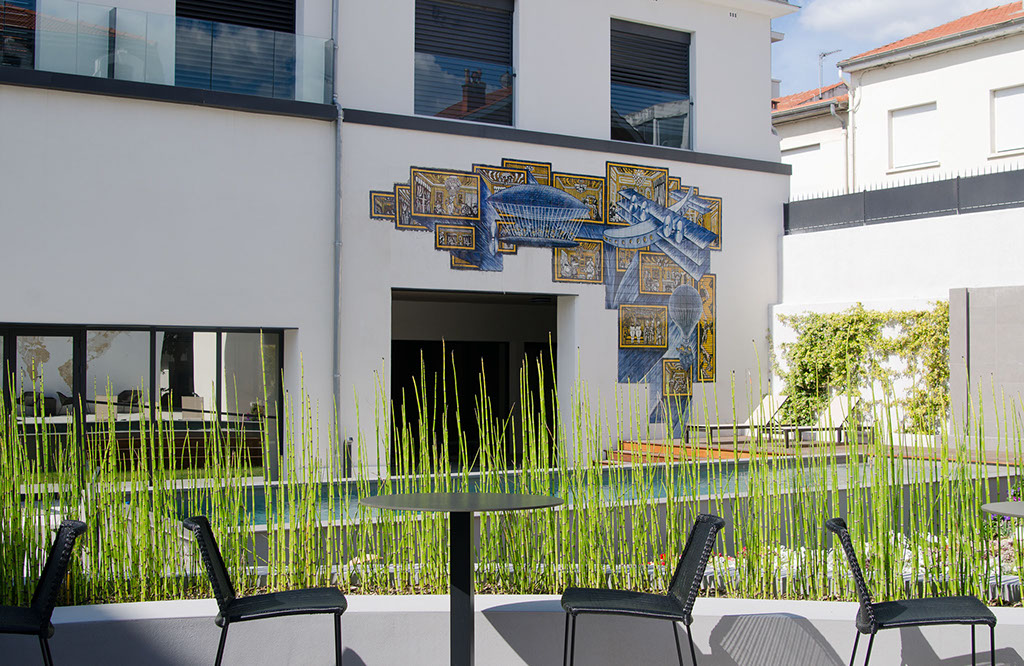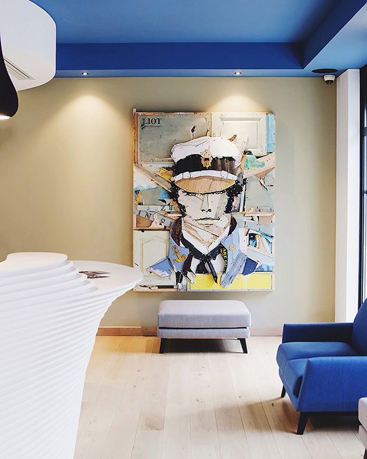 LES OEUVRES IN SITU In Situ est une locution latine qui signifie sur place. En art contemporain, in situ désigne une méthode artistique ou une oeuvre qui prend en compte le lieu où elle est installée. L'Hôtel a une principale vocation : accueillir et proposer son écrin à des artistes contemporains. Il s'agira aussi pour des artistes sélectionnés de prendre en compte le lieu pour des créations contemporaines en osmose totale avec ce dernier. Comme pour prolonger l'histoire de renaissance du lieu, le projet s'échelonnera dans le temps et va offrir à chaque artiste l'opportunité de s'exprimer, d'apposer sa patte, de véhiculer son émotion. Il marquera la singularité et l'esprit de l'Hôtel In Situ. Voici quelques réalisations des premiers artistes qui participent au projet.